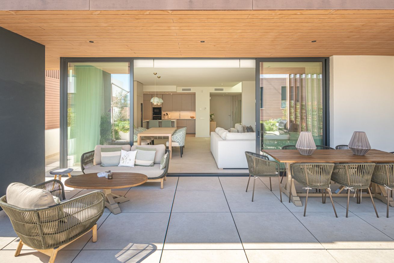 In addition to the luxurious interior, the property boasts a private rooftop terrace that is truly one-of-a-kind. Here, you can relax on comfortable sun loungers and enjoy the calming sea views. For movie lovers, there's even a second living room where you can watch your favourite films in style combined with an office area, bunkbeds and a guest cloakroom.
